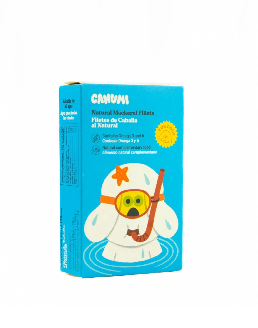 Det är en fet fisk, rik på vitamin B12, vitamin B6 och en hög mängd vitamin B3. Makrill innehåller mycket jod (51 mg per 100 g), vilket främjar våra husdjurs ämnesomsättning genom att reglera energinivåer och cellfunktion. Den förbättrar kognitiva tillstånd och stärker pälsen. Det höga innehållet av vitamin B3 i Canumis makrillfiléer gör den bra för blodcirkulationen. Vitamin B3 bidrar också till ett bättre hjärt-kärlsystem. Vitamin B6 främjar muskler och benutveckling samt stödjer deras normala funktion och kan även hjälpa till i kampen mot cancer. Vitamin B12 är särskilt fördelaktigt under graviditet och laktation. Det hjälper även matsmältningssystemet och sköldkörteln att fungera ordentligt. En stor fördel med makrill är dess antioxiderande egenskaper.
