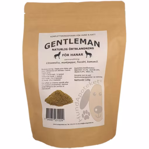 GENTLEMAN är ett kompletteringsfoder för hund och katt.Det är en örtblandning.Naturlig hjälp för hanar med välkända örter som alla har urgamla traditioner.Rekom