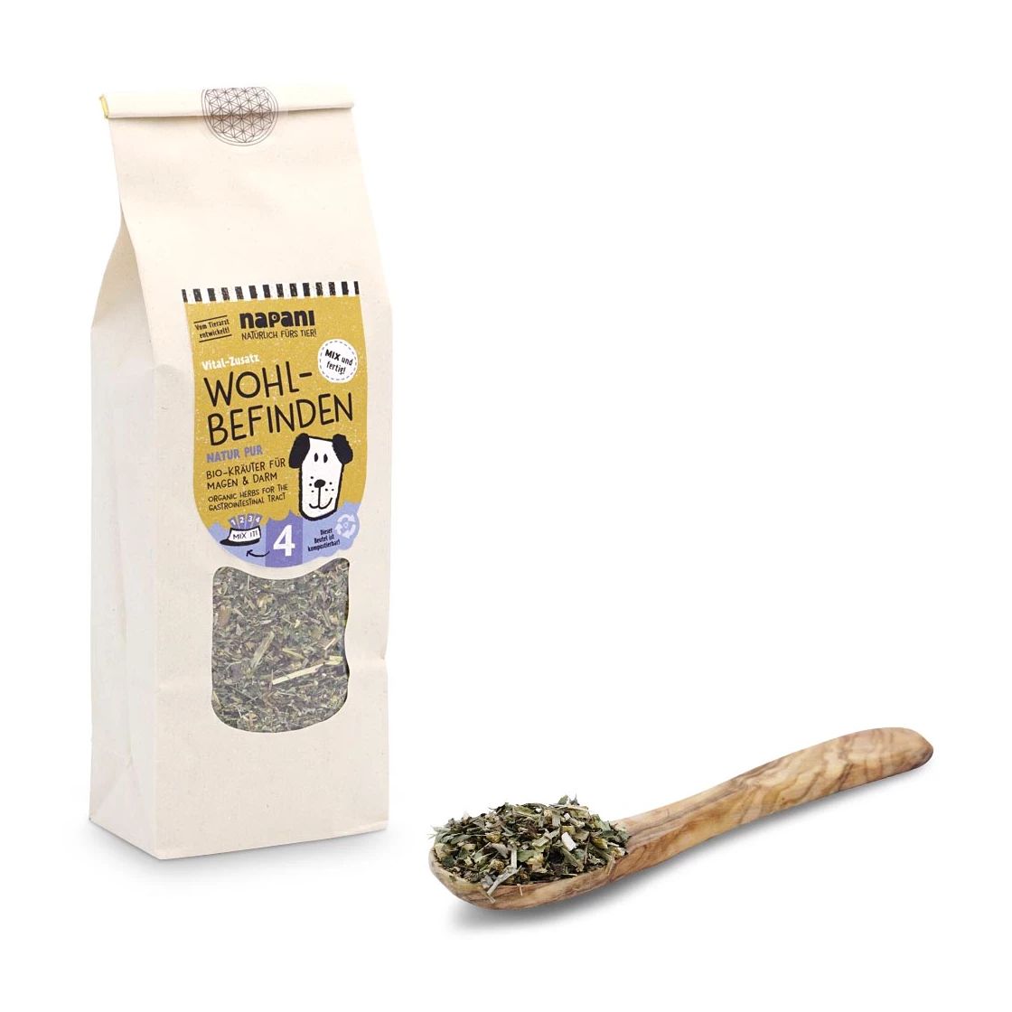 Tillsammans med vår veterinär har vi satt ihop denna unika blandning av utsökta ekologiska örter som är utformade för att möta behoven i hundars mag-tarmkanal.