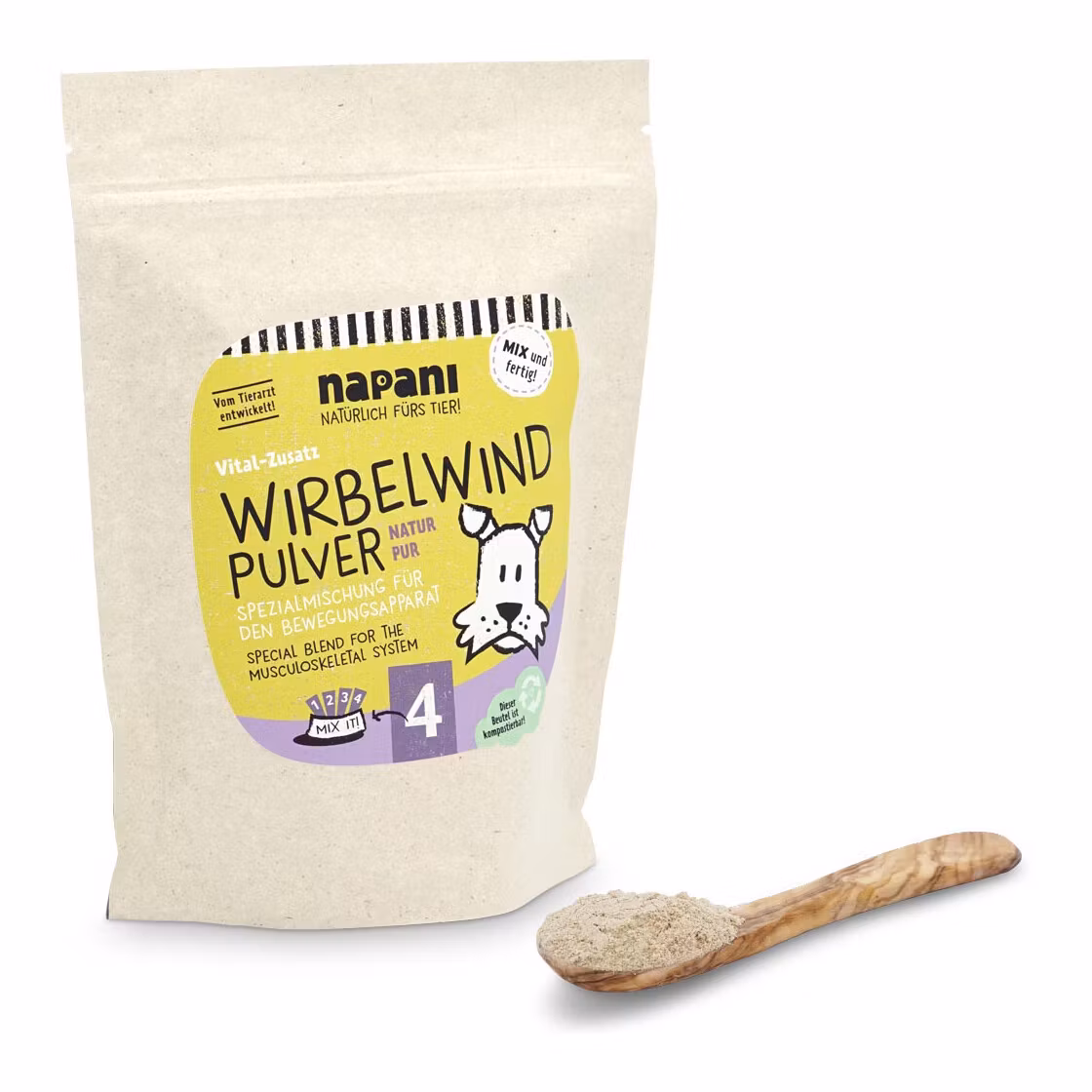 Vid befintliga problem, såsom ledproblem (artros), diskproblem mellan kotorna (spondylos) och skador på ligamenten (korsbandsbrist), kan vårt virvelvindspulver ges som stöd. Ledmetabolismen kan återaktiveras genom riktad näringstillskott.