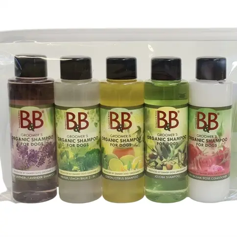 B&B Minibag är en sampak av ”de 5 originalen”, det vill säga de första 5 organiska schampo/balsamvarianterna som introducerades. B&B Minibag är en sampak av ”de 5 originalen”, dvs de första 5 ekologiska schampo/balsam smakerna som introducerades på B&B. Detta smarta provpaket innehåller: 1 x Lavendelschampo 100 ml. 1 x Meliss schampo 100 ml. 1 x Citrus schampo 100 ml. 1 x Jojoba Hampoo 100 ml. 1 x Rose Conditioner 100 ml. Broschyr och detaljerade tvättinstruktioner