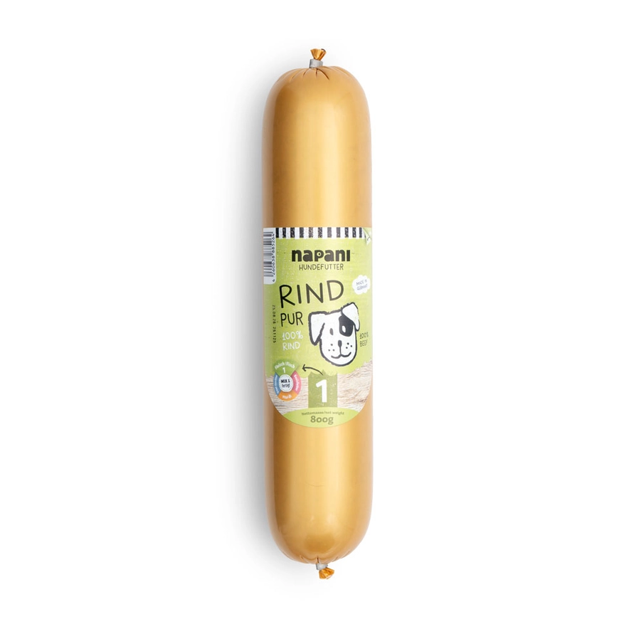 Bara nötkött - inget annat. Vi på napani ser också till att vi själva får bra kvalitet på maten. Därför är det självklart och viktigt för oss att våra fyrbenta vänner också får det bästa i skålen för sin hälsas skull. Enligt mottot: "din hund är vad den äter". Hos oss finns det bara en köttkälla i burken/konsttarmen - och den ångkokas varsamt. På så sätt bevaras så många vitaminer och mineraler som möjligt i köttet. För att få en artanpassad, behovstäckande mat, blanda vårt basfoder, vitaltillskott och vitaloljor. Att blanda är möjligt! - Nötkött från regionalt jordbruk - Naturligt varsamt ångkokt - Hypoallergen - Även lämplig för hundar med känslig mage - Monoprotein - Lättsmält proteinkälla - Lämplig för BARF - ersättning om råutfodring inte tolereras - Alger som naturligt bindemedel - Fri från färg-, arom- och fyllnadsmedel - Fri från lockmedel - Fri från spannmål och gluten Det innehåller: Nötkött är ett högkvalitativt protein som levererar alla essentiella aminosyror som hundar behöver för muskeluppbyggnad, immunsystem och cellfunktion. Det innehåller hälsosamma fetter - särskilt omättade fettsyror som stärker hud och päls och har en hög järnhalt. Eftersom vi naturligt binder våra rena köttsorter med alger, är konsistensen utsatt för okontrollerbara variationer. Om det alltså skulle finnas mer gelatin i produkten, har det inget med kvaliteten att göra. Tvärtom, hundarna älskar till och med denna slemmiga del. Genom förvaring i konsttarmen, som naturligtvis inte innehåller aluminium, kan köttet vid kanten få en viss missfärgning. D.v.s. när du skär upp korven kan kanten vara mörkare än kärnan. Det påverkar dock inte kvaliteten. Din hund kommer att gilla det!
