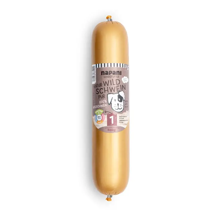 Bara vildsvinskött - inget annat. Vi på napani ser också till att vi själva får bra kvalitet på vår mat. Därför är det självklart och viktigt för oss att våra fyrbenta vänner också får det bästa i sin skål för att främja deras hälsa. Enligt mottot: "din hund är vad den äter". Hos oss finns det bara en köttkälla i burken - och den ångkokas varsamt. På så sätt bevaras så många vitaminer och mineraler som möjligt i köttet. För att få ett artanpassat, behovstäckande foder, blanda vårt basfoder, vitaltillskott och vitaloljor. Att blanda är möjligt! -Vildsvin från sin naturliga miljö -naturligt varsamt ångkokt -CO²-neutralt tillverkat -även lämpligt för hundar med känslig mage -Hypoallergen -monoprotein -lättsmält proteinkälla -lämpligt för BARF - ersättning om råutfodring inte tolereras -alger som naturligt bindemedel -fritt från färg-, arom- och fyllnadsämnen -fritt från lockämnen -fritt från spannmål och gluten -fritt från antibiotika, andra läkemedel och hormoner - enkelutfodring Det innehåller: Vildsvinskött innehåller mycket protein, vilket är viktigt för uppbyggnad och underhåll av muskler, hud och päls samt för immunsystemet. Rikt på järn, zink och B-vitaminer, vilket stödjer blodbildning, nerver och immunsystemet. Relativt fettfattigt, särskilt i jämförelse med konventionellt uppfött griskött. Vildsvin tillhör de så kallade "exotiska köttsorterna" och används sällan i standardhundfoder. Därför är det idealiskt vid: -foderallerger -elimineringsdieter -känslig matsmältning > Hållbart & praktiskt förpackat – mindre avfall, mindre ansträngning!